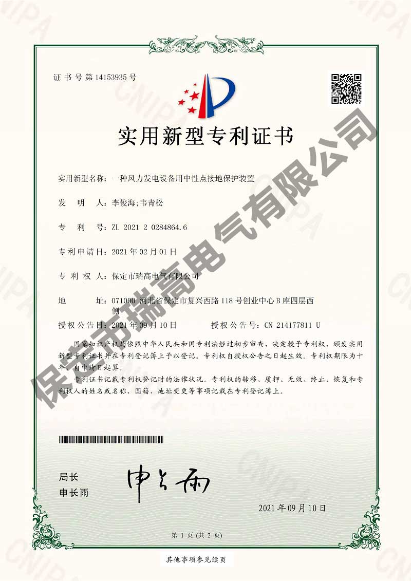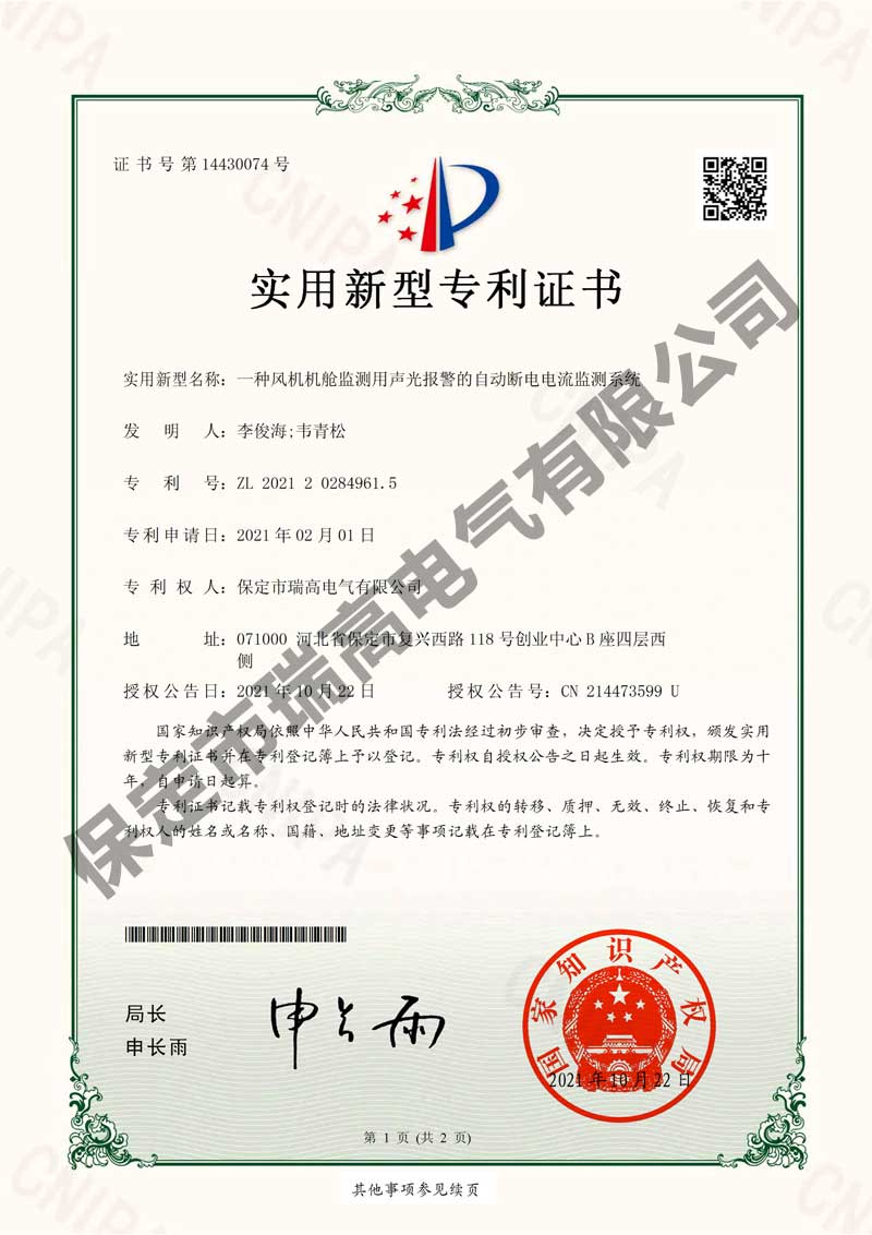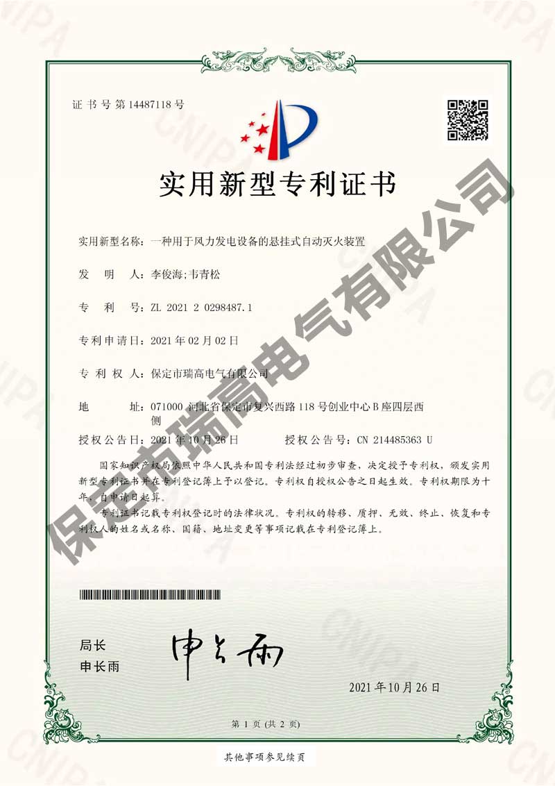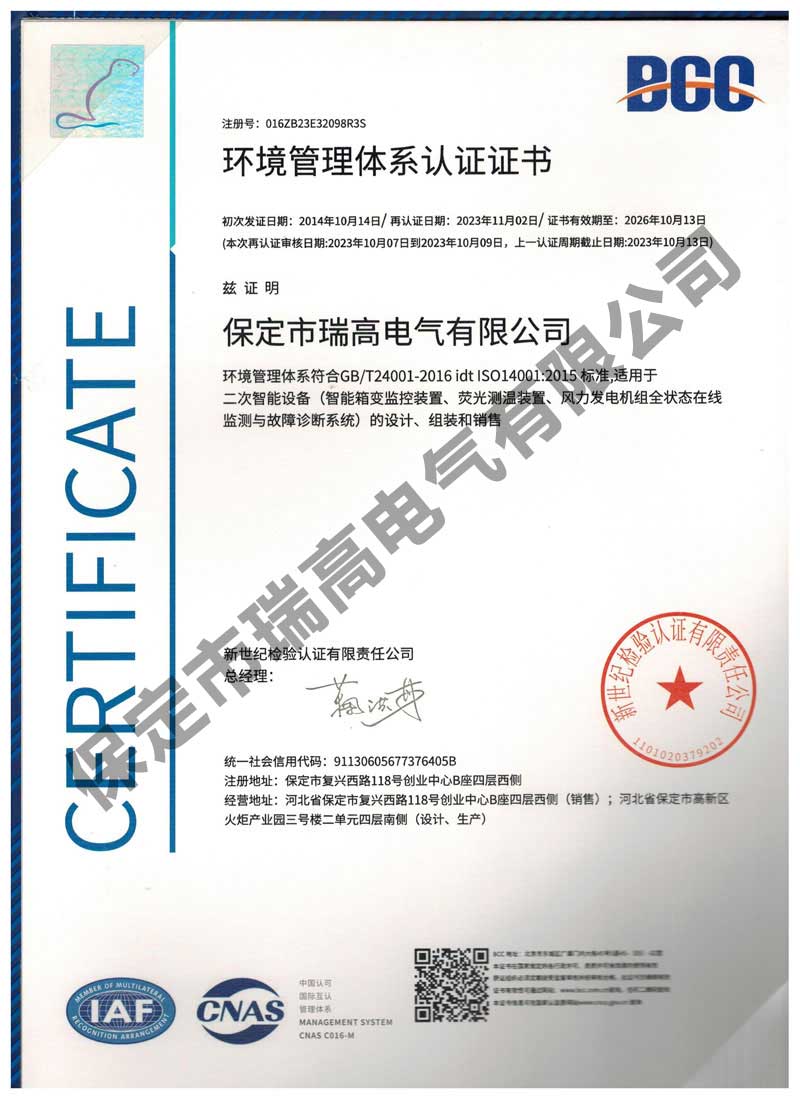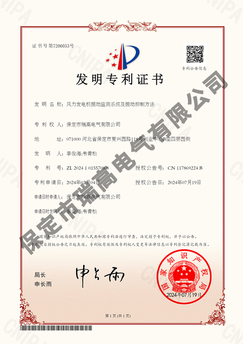 风力发电机振动监测系统及振动抑制方法风力发电机振动监测系统及振动抑制方法电流检测系统电流检测系统干粉灭火设备干粉灭火设备叶片状态监测装置叶片状态监测装置悬挂式自动灭火装置悬挂式自动灭火装置接地保护装置接地保护装置箱变测控装置箱变测控装置环境管理体系认证证书环境管理体系认证证书